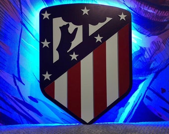 This model is a 3d badge or emblem from atlético de madrid logo, it can be printed or used to make a cnc object.